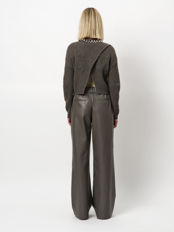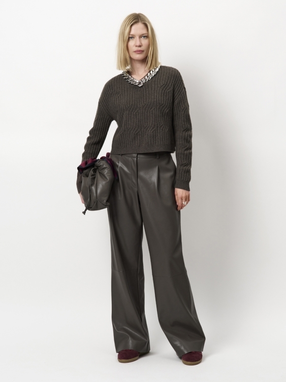 Onze wide-leg broek Jules Faux in Antique Grey is ontworpen om elke outfit naar een hoger niveau te tillen. Gemaakt van hoogwaardig faux leather met een gladde, gecoate finish die zorgt voor een subtiele, verfijnde uitstraling. De scherpe vouw en de geplooide details geven de broek een elegante, doordachte pasvorm. De elastische tailleband aan de achterkant garandeert zowel comfort als stijl. Draag met een bijpassende Dante6 knit voor een strakke ton-sur-ton look.