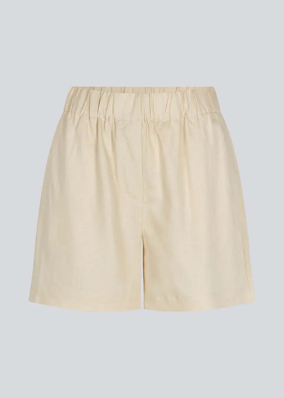 Een short van zomerzand met een relaxte pasvorm, wijde pijpen en een elastische tailleband. Darrel-shorts zijn gemaakt van linnen materiaal.